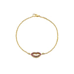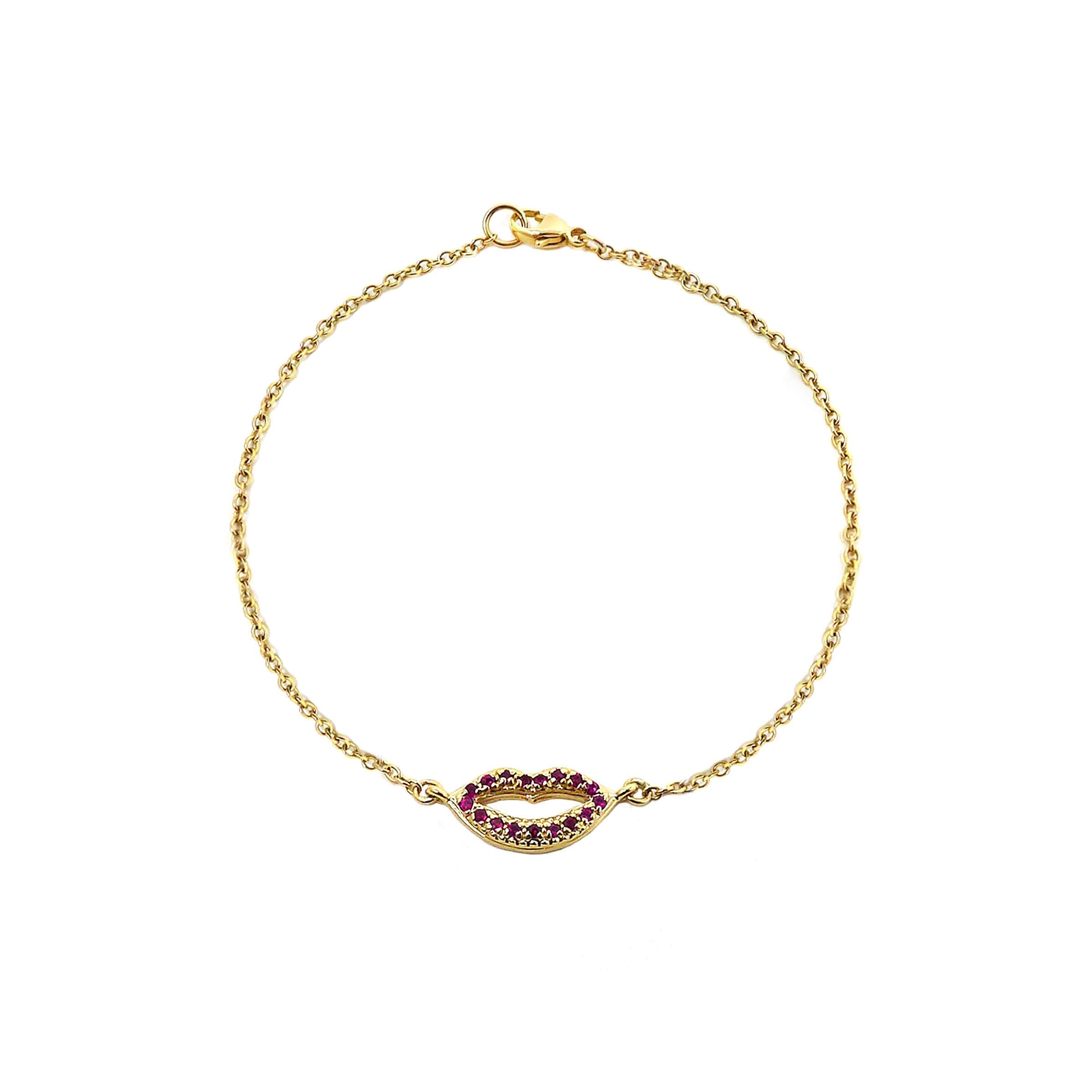A playful twist on timeless elegance, this 14k gold bracelet features a pair of lips encrusted with rubies. Feminine and fun, it's perfect worn solo or layered with your favorite pieces.