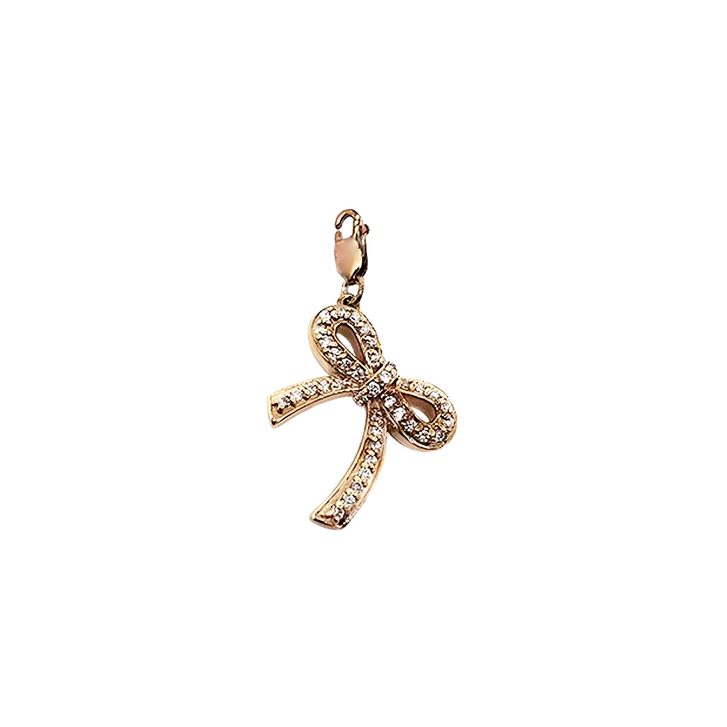 This 14k gold bow charm is delicately accented with diamonds for a touch of sparkle. Whether added to a charm bracelet, necklace, or worn as a pendant, the bow symbolizes elegance and love.