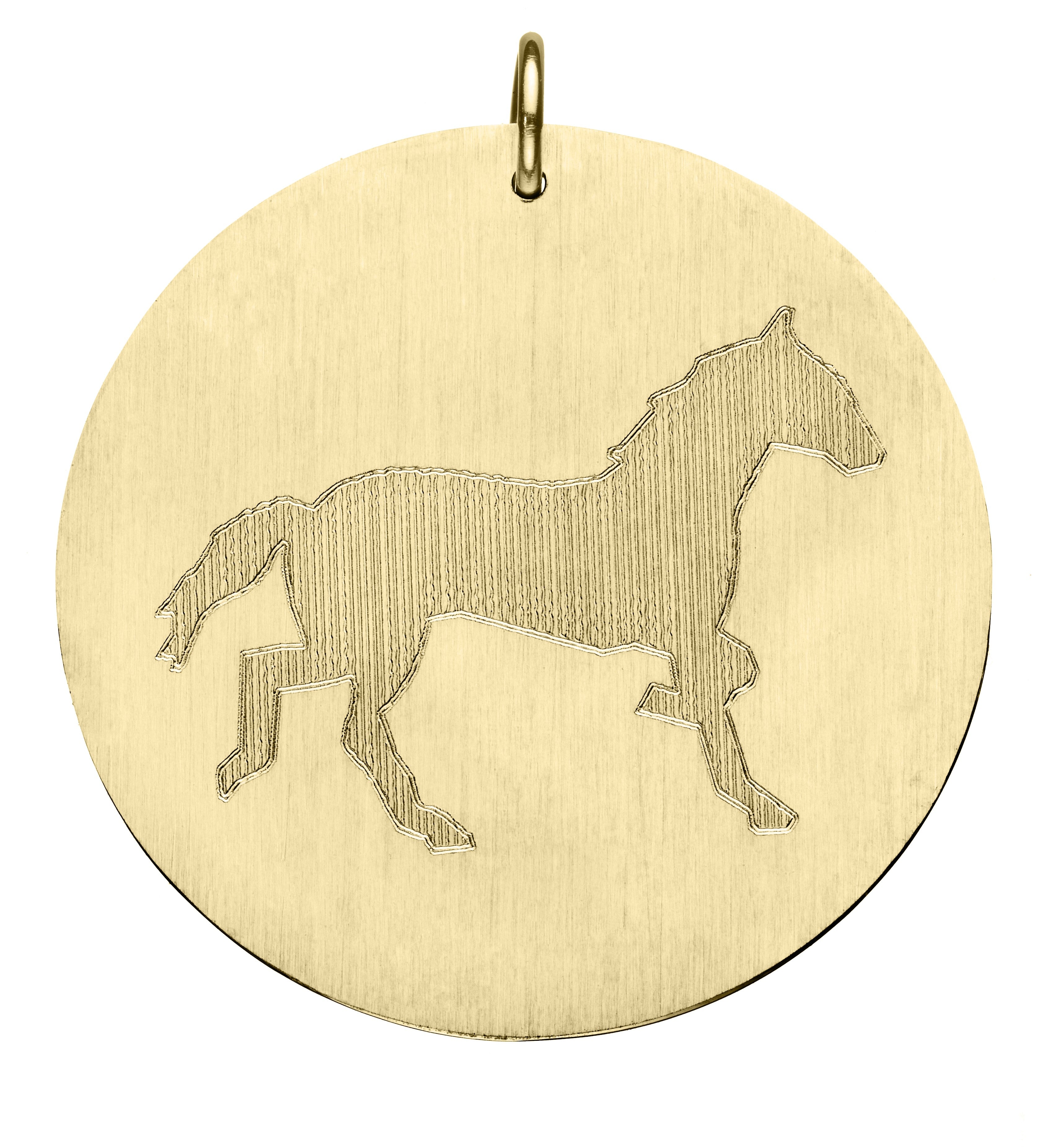A classic gold disc engraved with beautifully detailed emblems using precision machine engraving. Custom motifs can be made.