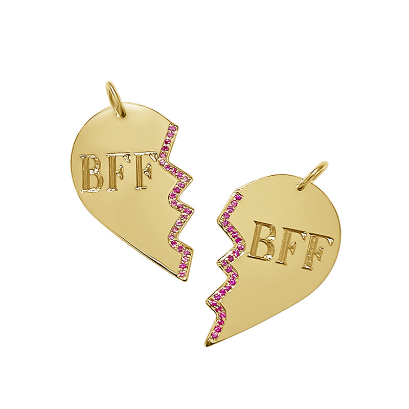 A classic BFF heart to celebrate your closest bond. Choose from all gold or add stones for extra sparkle. Engrave both sides with names, dates or a special message.