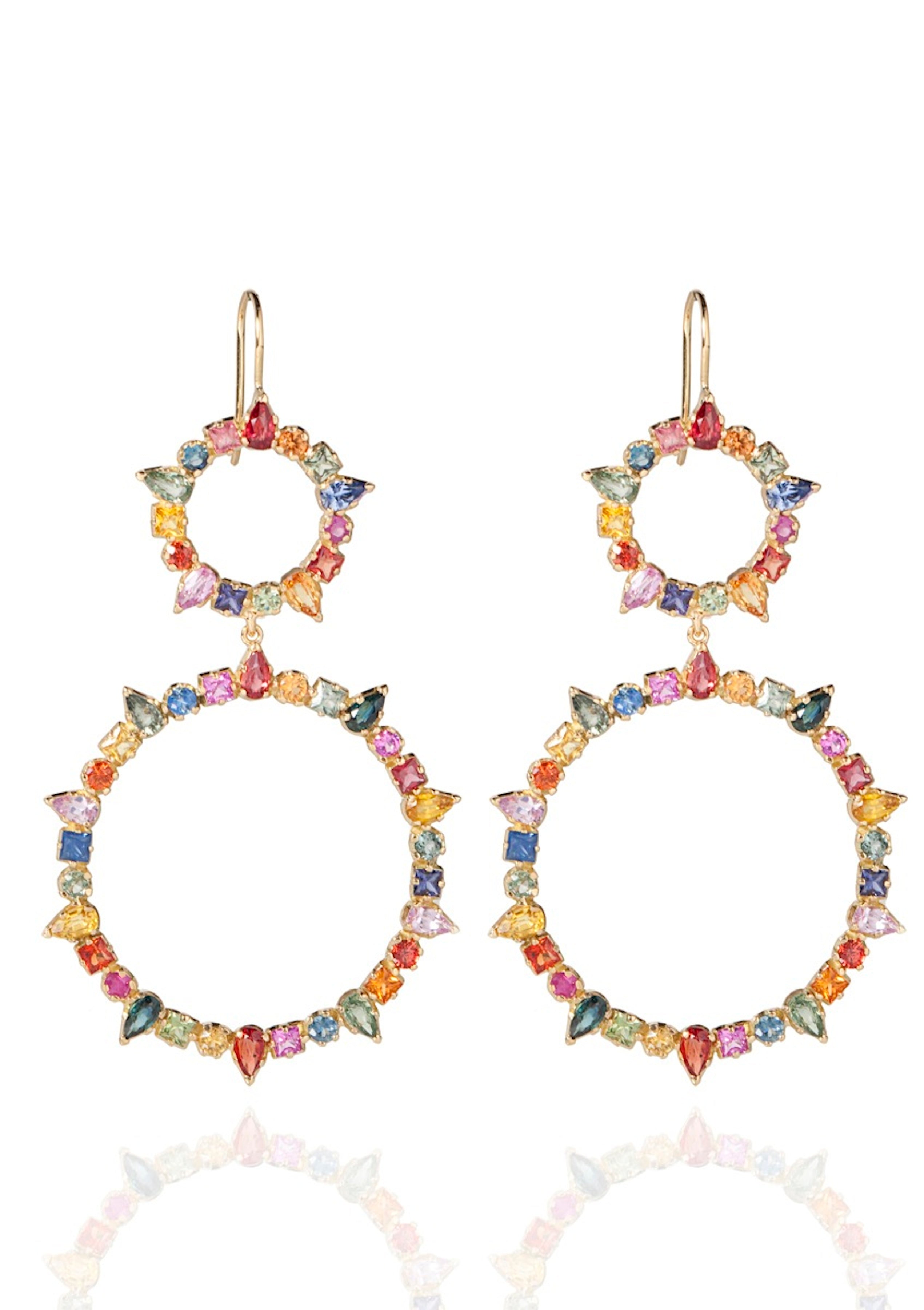 18K Yellow Gold and Rainbow Multi Sapphire Earrings