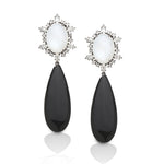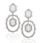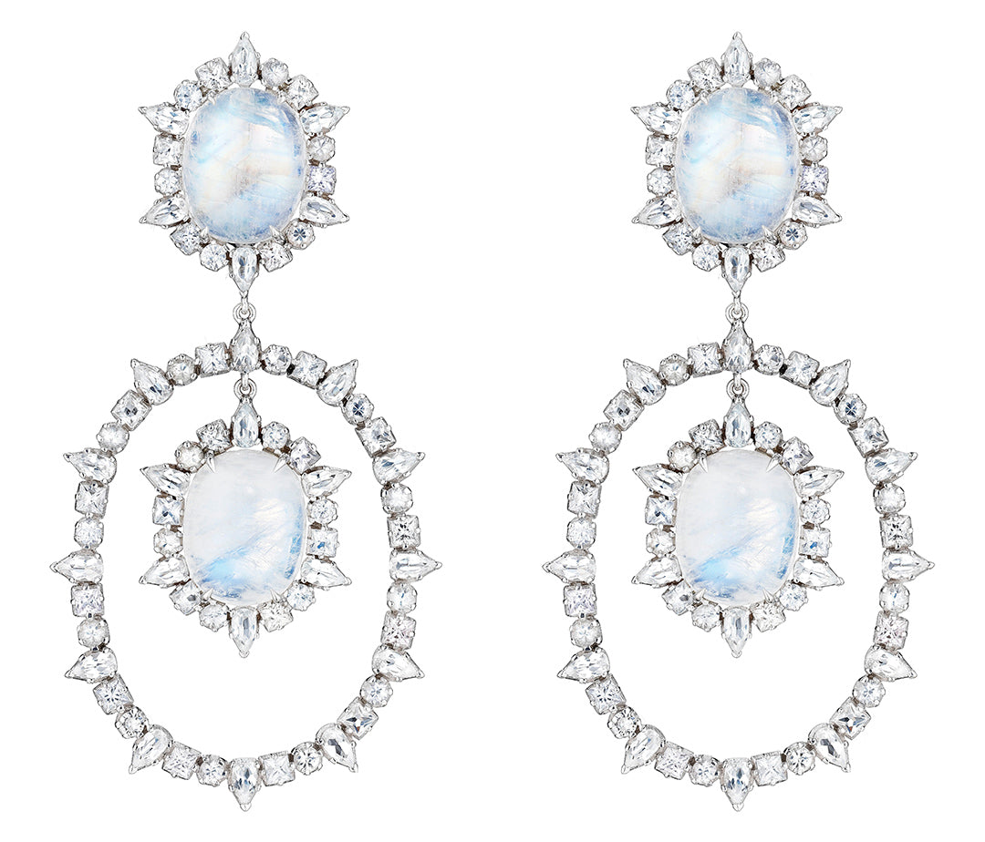 18k gold and rainbow moonstone earrings. Top can be worn alone or with a drop.