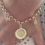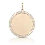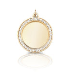 A timeless diamond disc pendant available in four sizes, designed for full customization. Add a monogram, name, date, or meaningful emblem-the possibilites are endless.