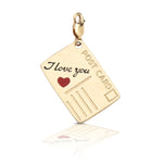 a golden love note you can wear-this charming postcard pendant features "I love you" in delicate script, a red enamel heart accent, and engraved details reminiscent of vintage mail. Perfect on its own or as part of a personalized charm necklace or bracelet