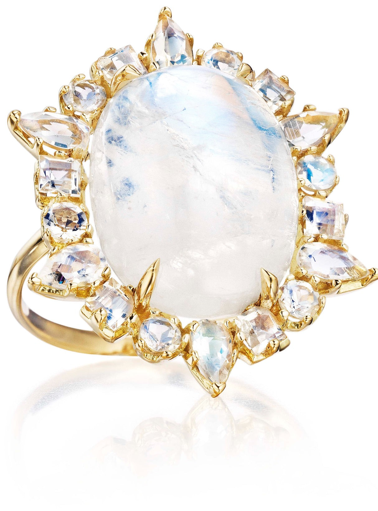 14K Gold and Rainbow Moonstone Cocktail Ring.