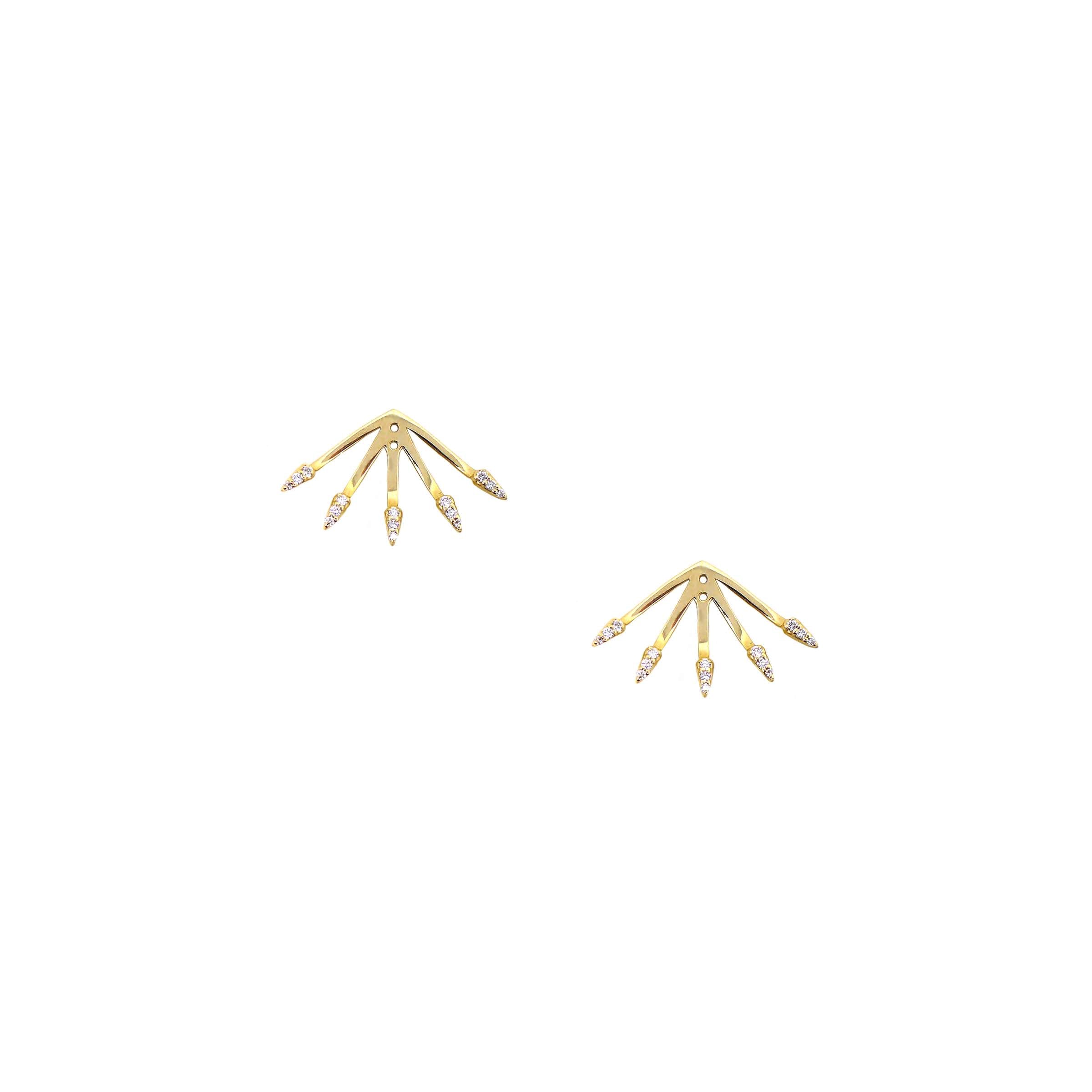Fan shaped ear jackets featuring five stones. A modern silhouette with vintage allure, they make an unforgettable statement. Add one of our studs or update your own diamond studs.